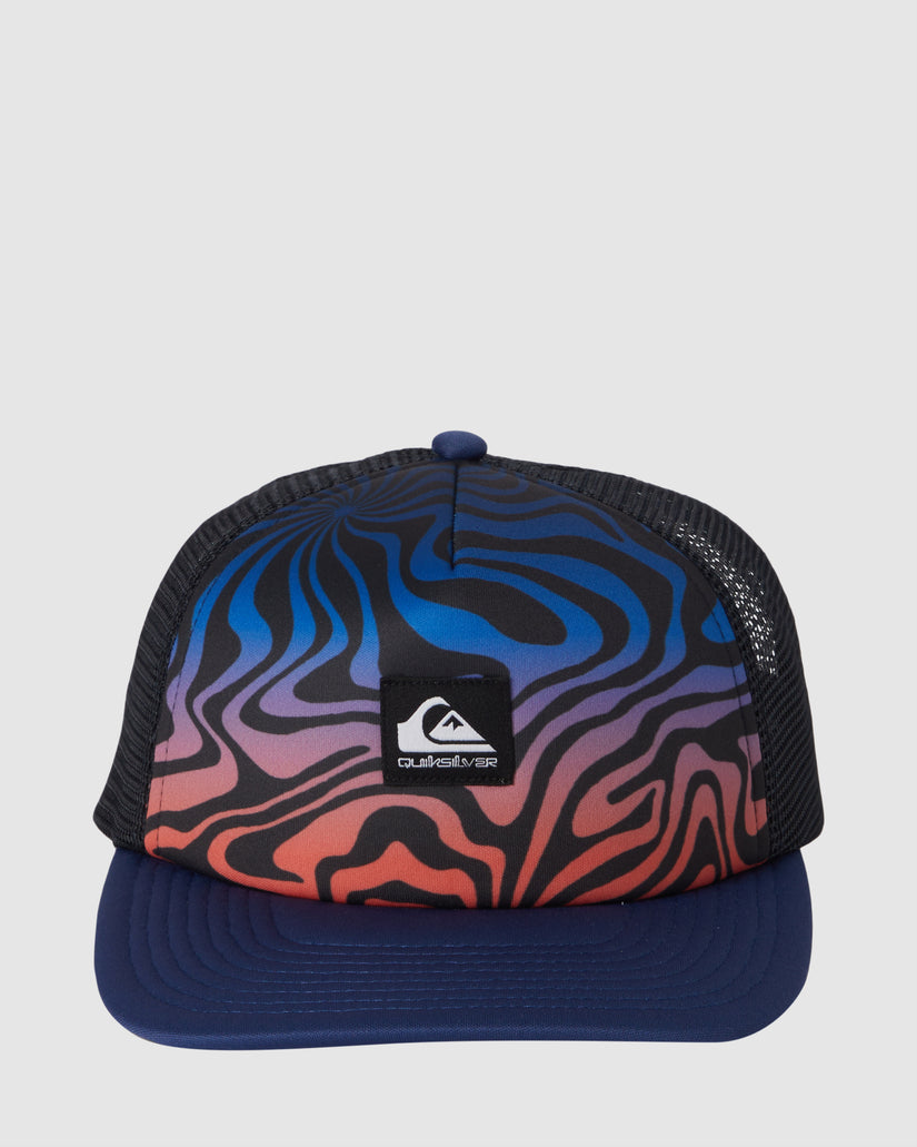 Explore the outdoors with Quiksilver's Emu Coop Trucker Hat for boys. Featuring a polyester fabric construction, semi-curved bill, and plastic snapback closure, this hat is perfect for any adventure.