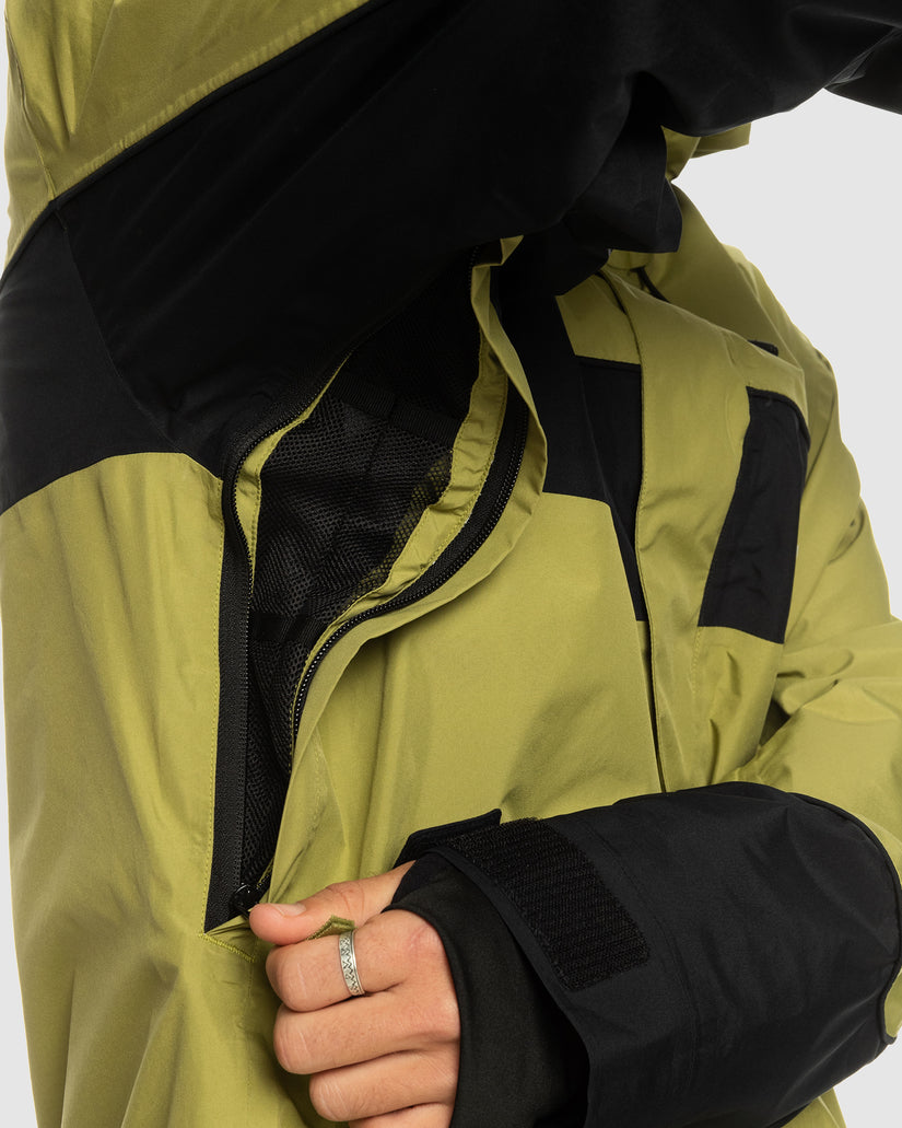Inspired by the mid-late '90s Quiksilver archive collection, the High Altitude collection pays tribute to this era with oversized silhouettes, bold color blocking, and curvy pipings. Crafted from our Made Better Collection crafted of eco-conscious fabrics, this lightly-insulated GORE-TEX® snow jacket will keep you dry and comfortable in any terrain. It has a boxy fit, a strategic inner lining, and all the trims you need for a day on the mountain, like media pockets and helmet compatibility.