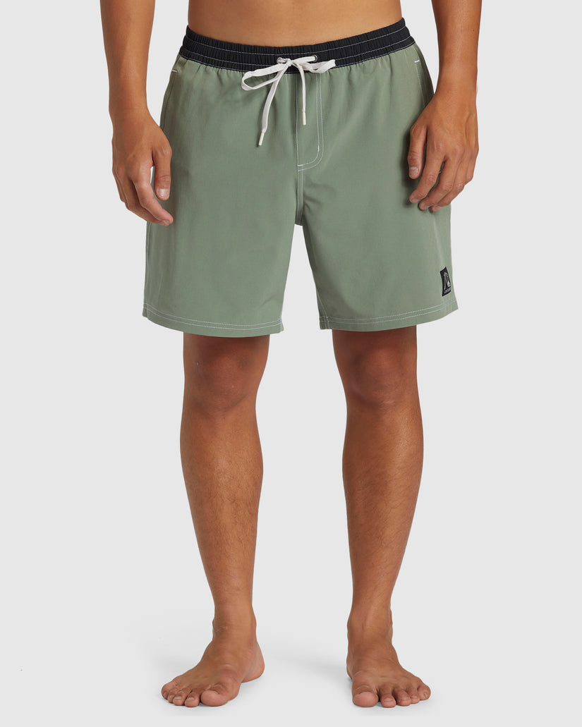 Experience ultimate comfort and style with Quiksilver's Original Straight 17" Elastic Waist Shorts. Crafted from a blend of organic cotton and recycled plastic bottles, these water-repellent shorts feature a classic comfort waistband, side-entry pockets, back hook and loop tape closure pocket, fixed drawcord closure, iconic original bubble logo and key bungee cord inside pocket.
