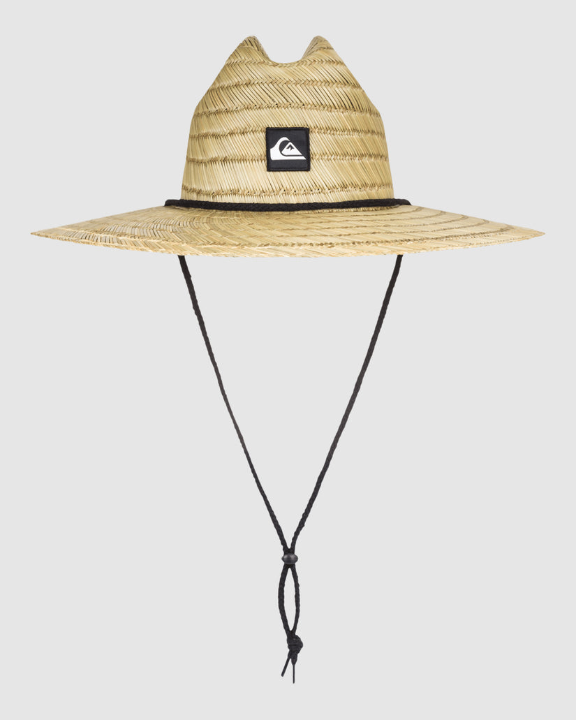 Keep the rays at bay with the Pierside Straw Lifeguard Hat. The straw construction provides lasting style, comfort and protection with an adjustable chin strap and woven Quiksilver patch. Featured here in the Natural colorway.