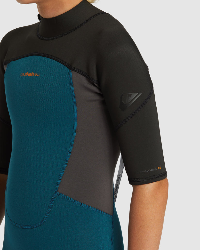 For warm-water surfing, nothing competes with Quiksilver's 2/2mm Prologue Short Sleeve Spring Suit for boys. Featuring a blend of FreeMax super stretch and StretchFlight 2 neoprene for increased warmth and comfort, flatlock stitched seams, and a back zip entry system, this Bluesign® certified wetsuit results in a lower carbon footprint so you'll feel good in it, but also feel good about it.