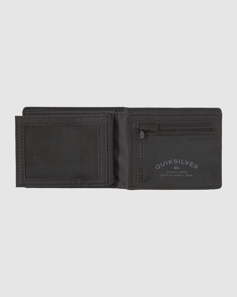 Topstitching details the faux leather construction of this essential tri-fold wallet. The interior slots for your bills, cards, and ID aim to make your life easier. Complete with a Quiksilver metal plaque.