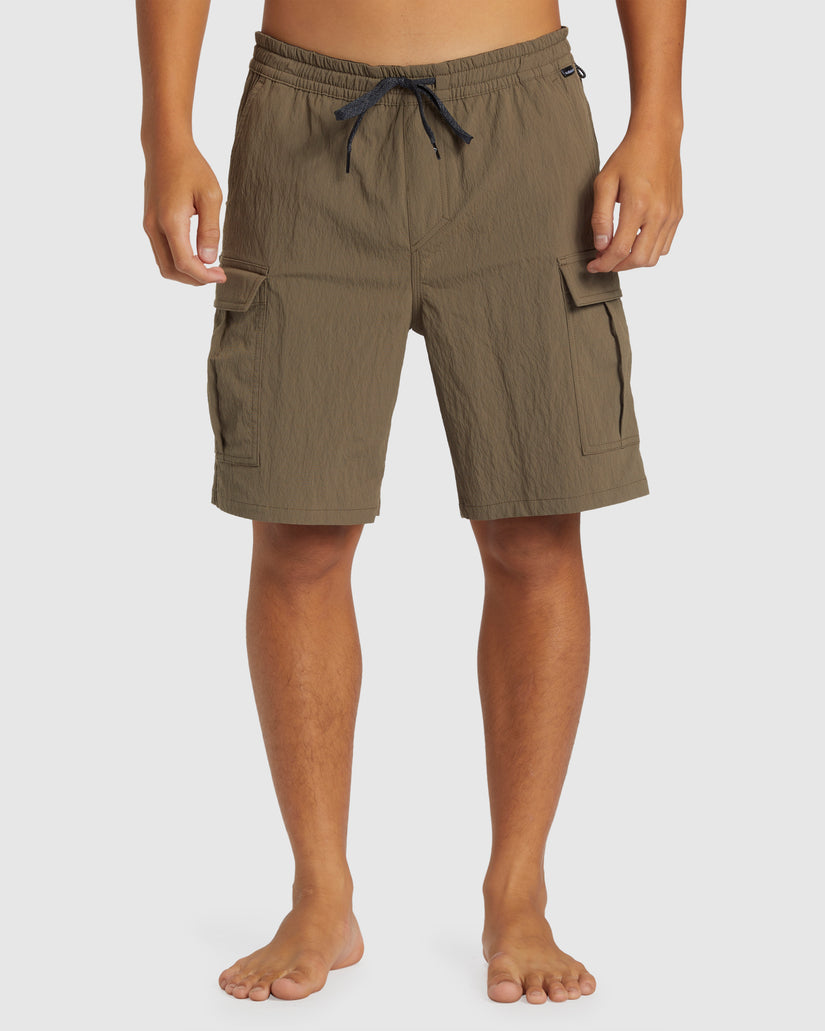 Move effortlessly from land to sea with these Taxer 19" Amphibian cargo shorts by Quiksilver. Crafted from a partially recycled, 4-way stretch fabric, they offer exceptional waterproofing and quick-drying performance for all your water-based exploits. With an elastic waist, drawcord closure, and ample pockets, they're both comfortable and practical.