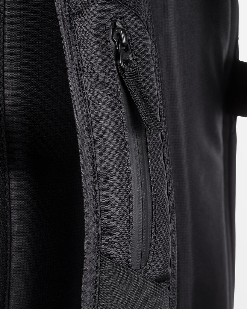 The Travis Rice x Quiksilver Platinum 18L Small Backpack is a purpose-driven accessory for all your mountain adventures. Crafted from durable recycled polyester, it offers convenient features like a fleece-lined goggle pocket, laptop sleeve, and vertical ski/snowboard carry. The adjustable sternum strap and air mesh back ensure a comfortable, customized fit for all-day excursions.