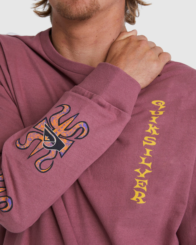 Part of the Quiksilver X Surfers Of Fortune Collection, the Trident long-sleeve tee features custom artwork on the left chest and side sleeve. Made of pure cotton fabric with a quality feel, it offers an oversized fit for comfort and a contemporary look.